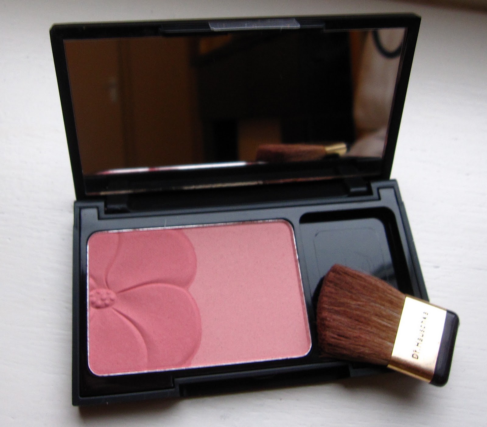 Een prettig neveneffect is de verzorgende factor van de Rouge. Hij droogt de huid niet uit maar veroorzaakt ook geen puistjes. De zachte terughoudende bloemige geur vindt ik heel prettige. Hij is veel minder sterk dan vele andere poeders.