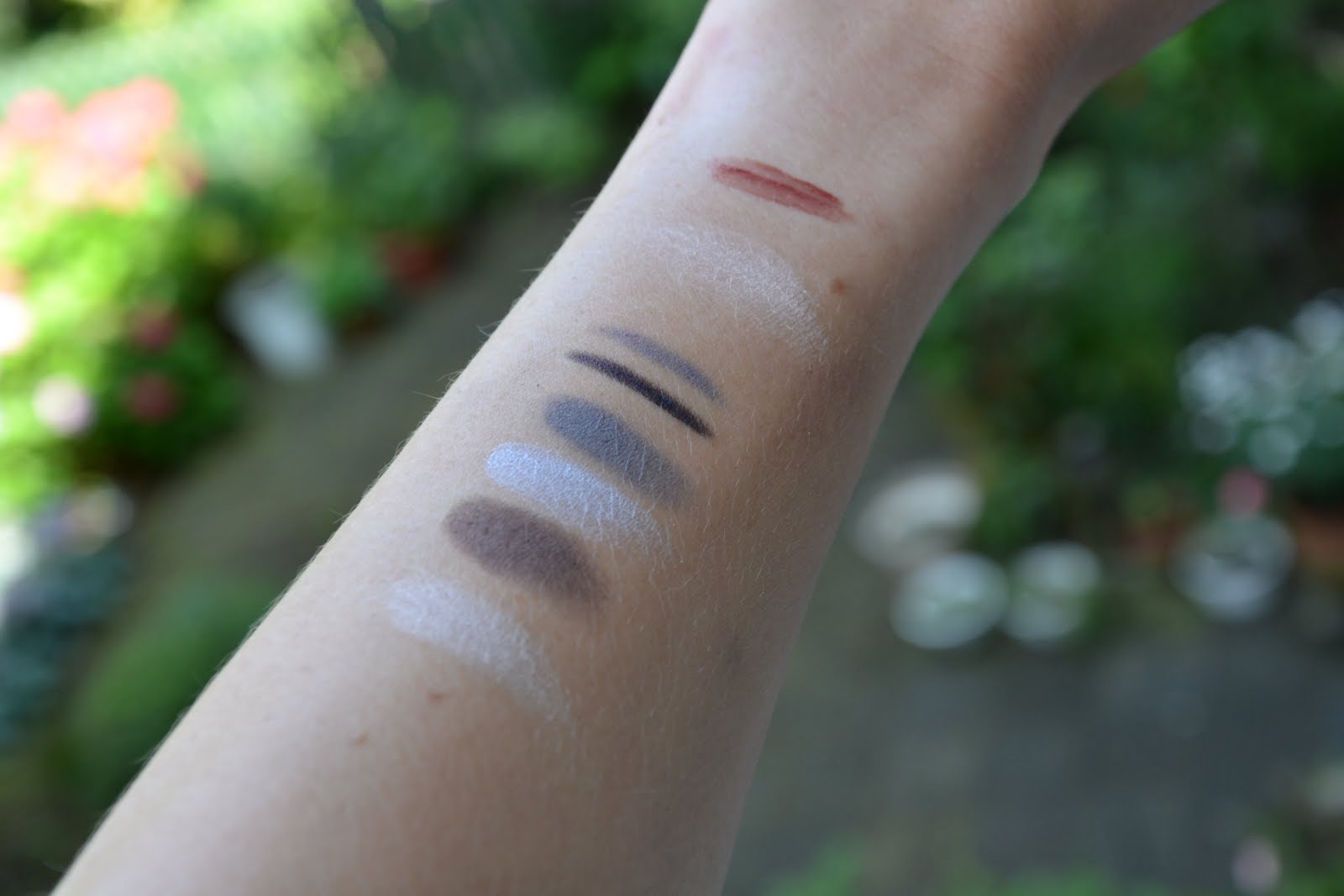 Dr.Hauschka is op een erg goede weg wat hun limited editions betreft. Het is een veelbelovende editie die niet qua kleuren, maar wel qua producten erg op de vorige lente LE Lavender Dreams lijkt. Dit vind ik niet erg, immers hou ik erg van de oogschaduwpaletten, en ook van de dubbele Kajals van Dr.Hauschka kan ik geen genoeg krijgen. Wel had ik graag een nieuwe rouge, highlighter of lippenstift kleur erbij gezien. Maar ach..die komen zeker weer een ander keer.En hier de swatches en fotos van de producten