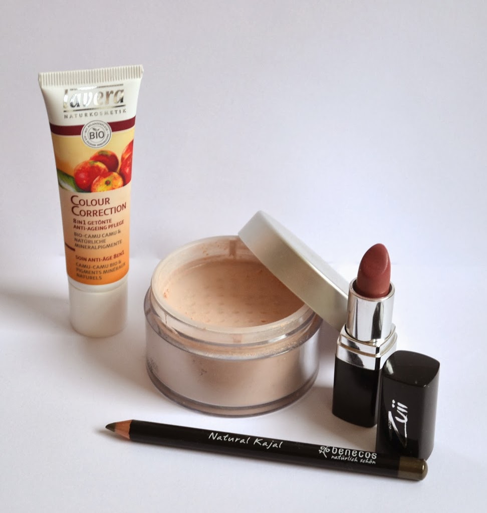 Der Teint ist nur leicht ausgeglichen mit der neuen Colour Correction* von Lavera. Da diese CC-Pflege etwas glänzt habe ich für die Fotos meinen Teint mattiert mit dem Aubrey Silken Earth Transluncent Base mattiert. Diese ist ein loses, nicht deckendes Puder ohne Talk. Das Puder duftet ganz wunderbar nach Marzipan und liegt leicht auf der Haut. Meine empfindliche und feuchtigkeitsarme Haut bräuchte aber eigentlich kein extra Puder.